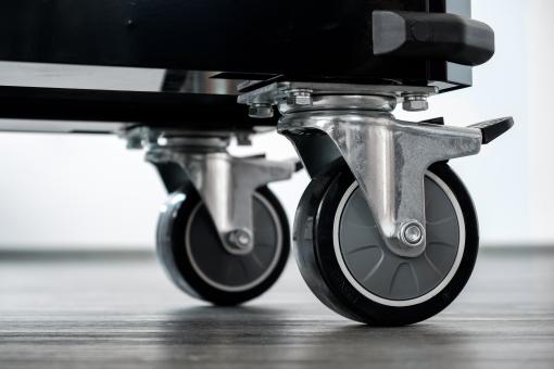- broad gauge running gear with 4 Ø 125 mm full rubber, smooth running casters, 2 swivel castors with double break function (tangential and axial)